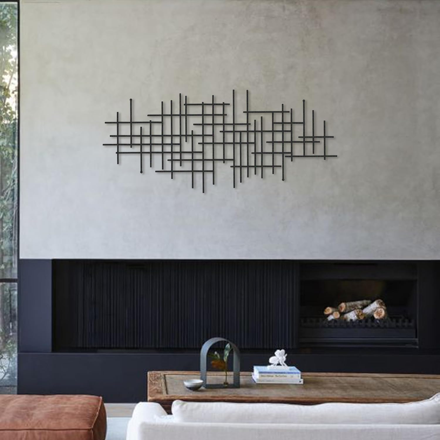 Modern Metal Wall Art - Black Geometric Minimalist Decor (98 x 43.2 cm)